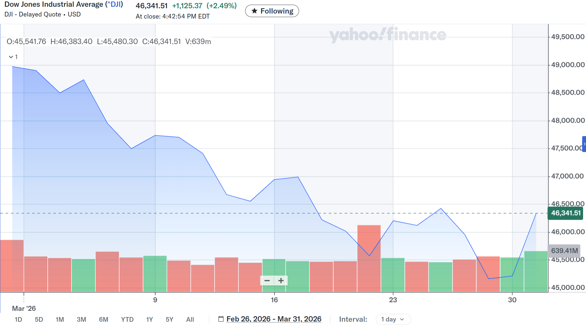 2026年3月末終値:46,314.51