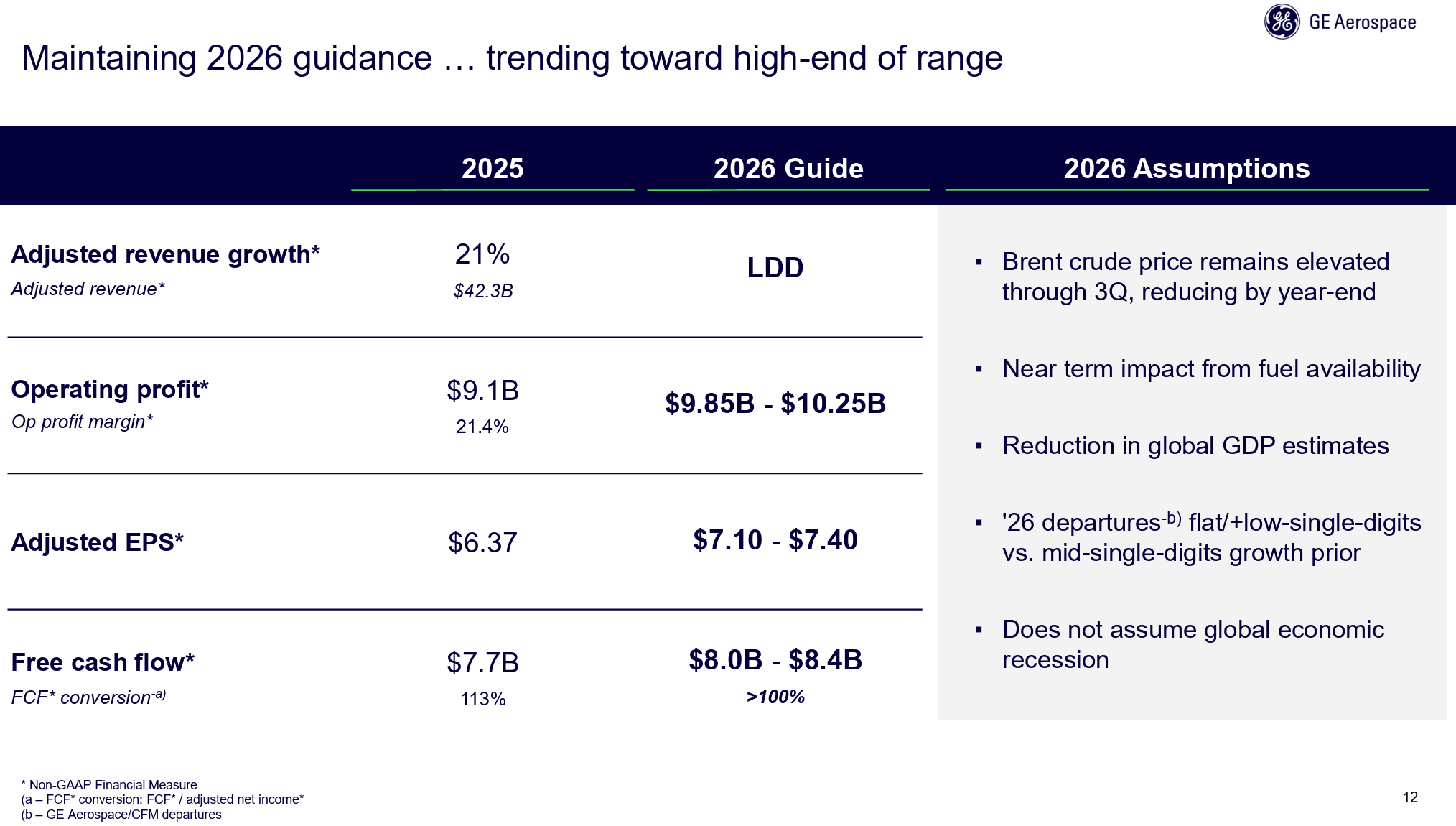 - スケジュールに変更はなく、損失にも変更はない(前四半期決算では「2026年にはエンジンの出荷台数を増やし続ける予定で、それに伴いGE9Xプログラムの損失は前年比で倍増する見込み」、「2026年ガイダンスには、これらの損失がその水準に達することを織り込んでいる」としていた)