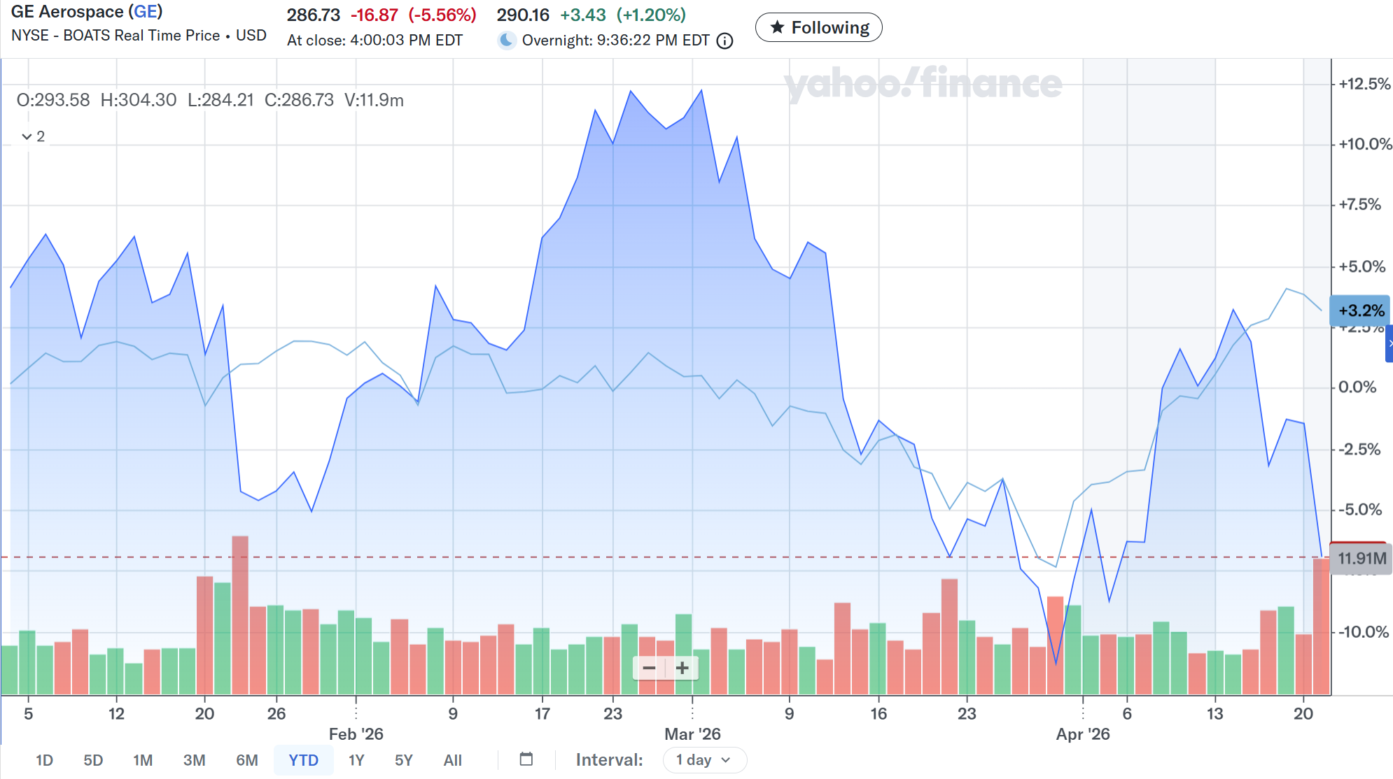2026年4月21日(火)には自分の所有銘柄であるGEエアロスペース(GE)の2026年第1四半期決算発表があった。