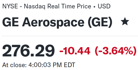 そんな状況の中で今回の決算内容及びそれを受けてGEエアロスペース株はどうなったのか、以下に確認して整理しておく。