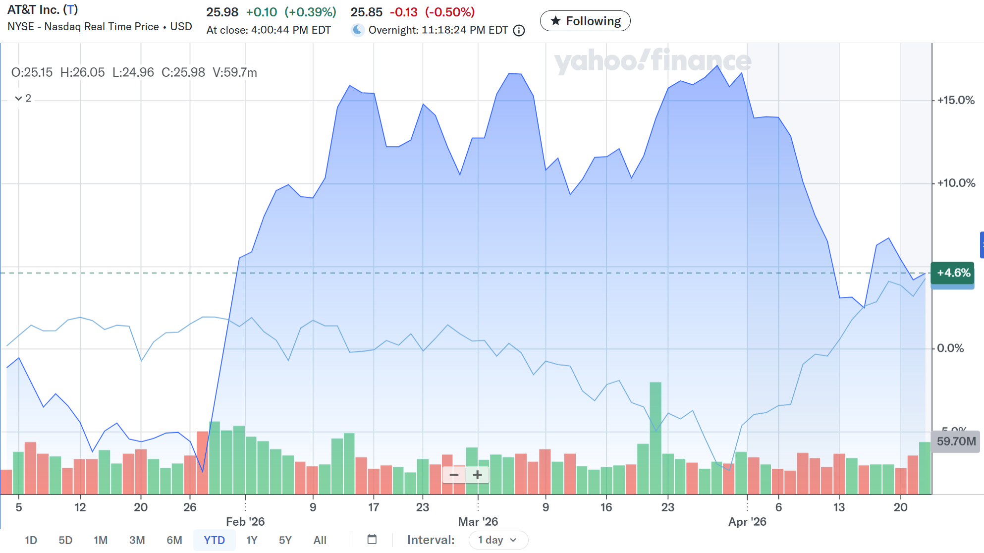 2026年4月22日(水)には自分の所有しているAT&T(T)の2026年第1四半期決算の発表があった。