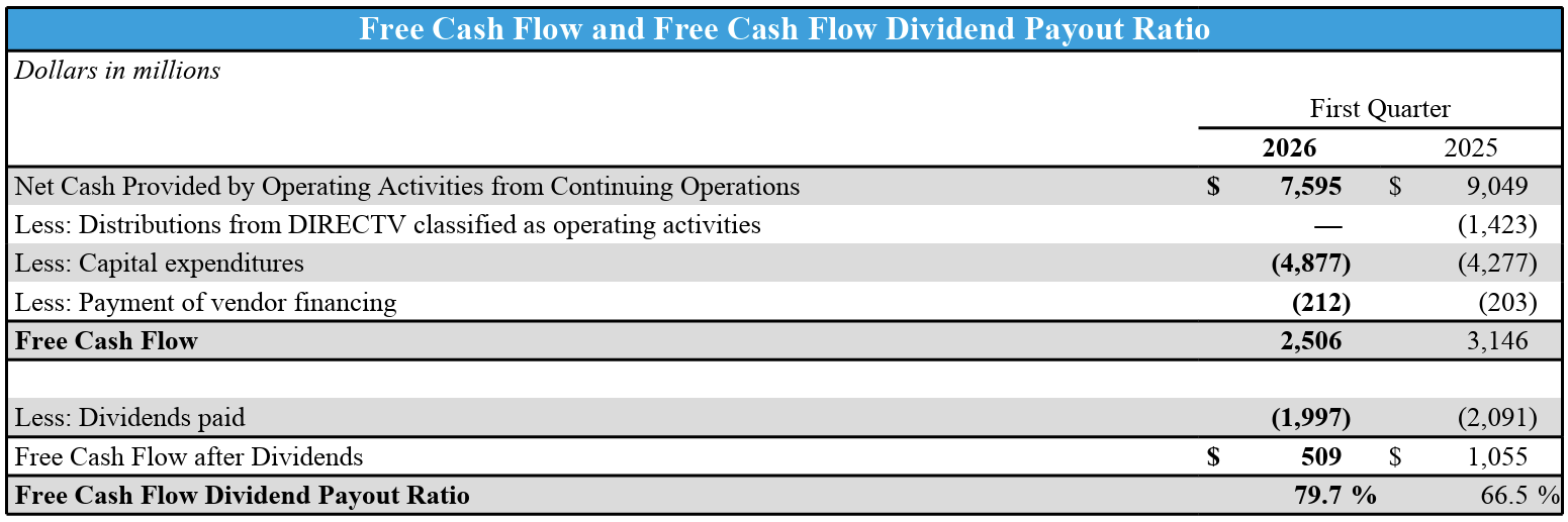 - 現在進行中のEchoStarとの取引後、純負債比率は約3.2倍に上昇し、その後2026年末までに約3倍に低下して、取引後約3年以内に目標である2.5倍の範囲に戻ると引き続き予想している