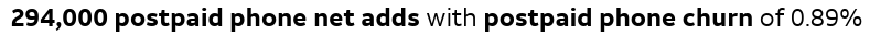 - 月額料金を支払う携帯電話契約数(Postpaid phone)は29万4000純増で解約率は0.89%