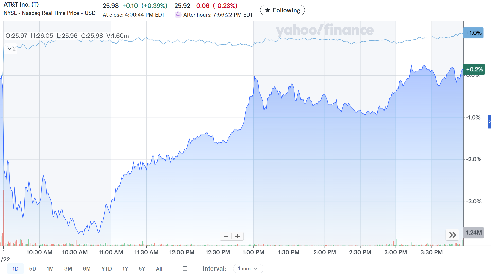 前日の米国市場閉場後にトランプ大統領がSNSにイランとの停戦を無期限に延長する旨の投稿をしたことを受けて上昇したのと比べるとAT&Tのやや上昇は見劣りがする。