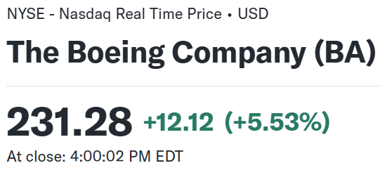 前日の米国市場閉場後にトランプ大統領がSNSにイランとの停戦を無期限に延長する旨の投稿をしたことを受けて上昇したのと比べてもボーイング株の上昇は際立っている。