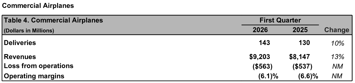 - 以前にも述べたように、航空機の配線に関する最近の不適合発見(2026年3月に機械加工のミスにより配線の微小な損傷が発生)により、第1四半期の737の納入の一部が第2四半期にずれ込んだ