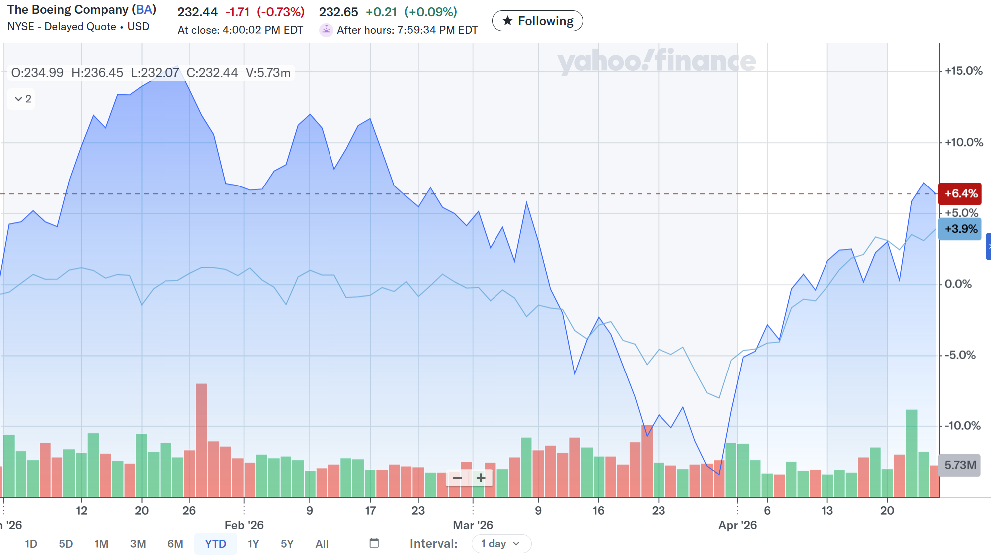 2026年4月22日(水)には自分が所有しているボーイング(BA)の2026年第1四半期決算発表があった。